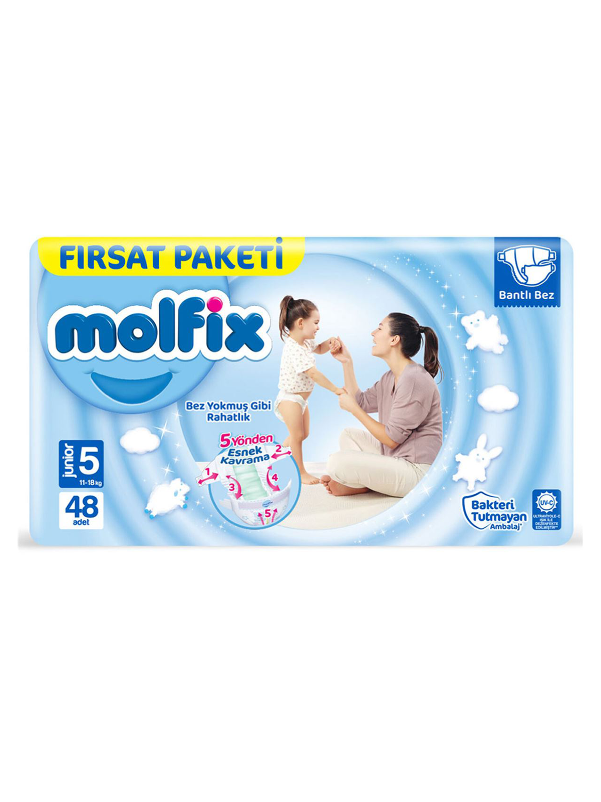 حفاضات الأطفال مولفيكس مقاس 5 جونيور - عبوة اقتصادية تحتوي على 48 حفاضة