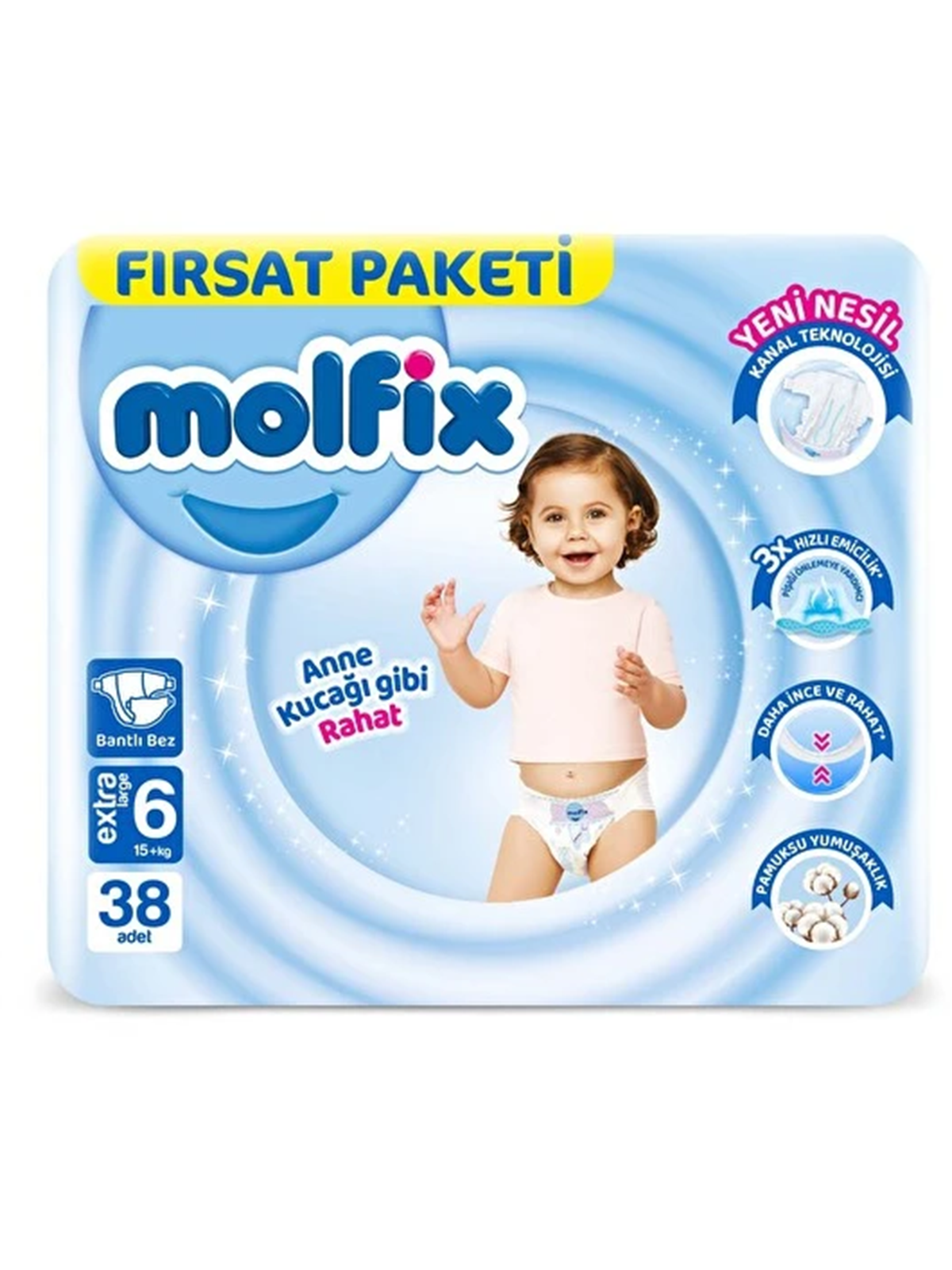 حفاضات الأطفال مولفيكس ثلاثية الأبعاد مقاس 6 (كبير جدًا) - عبوة اقتصادية تحتوي على 38 حفاضة.