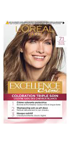 صبغة شعر لوريال باريس إكسيلانس كريم 7.1 أشقر رمادي